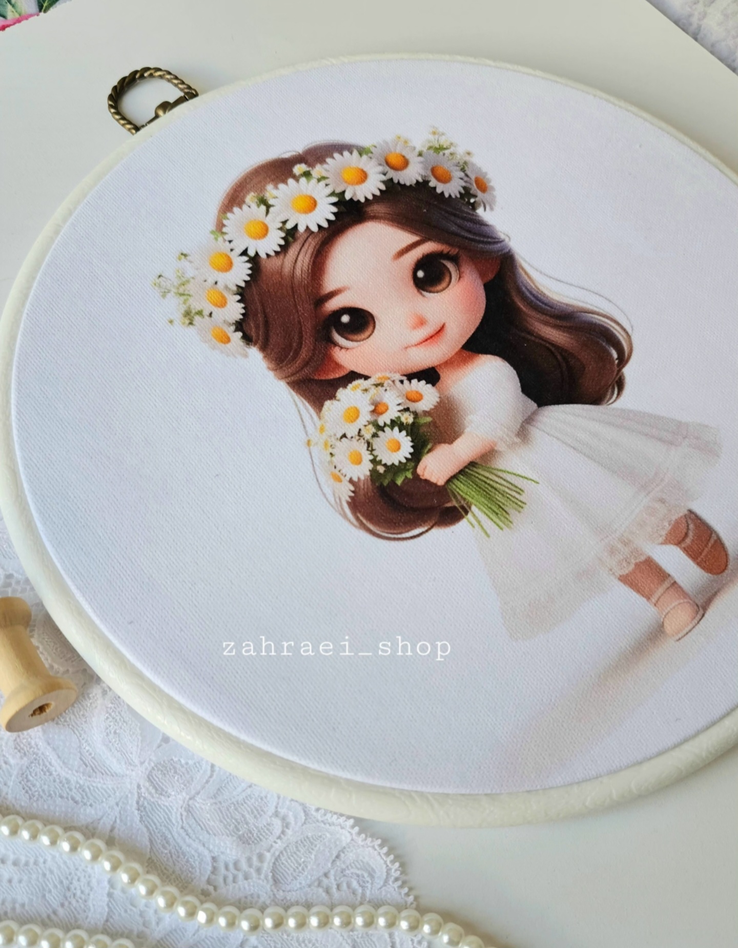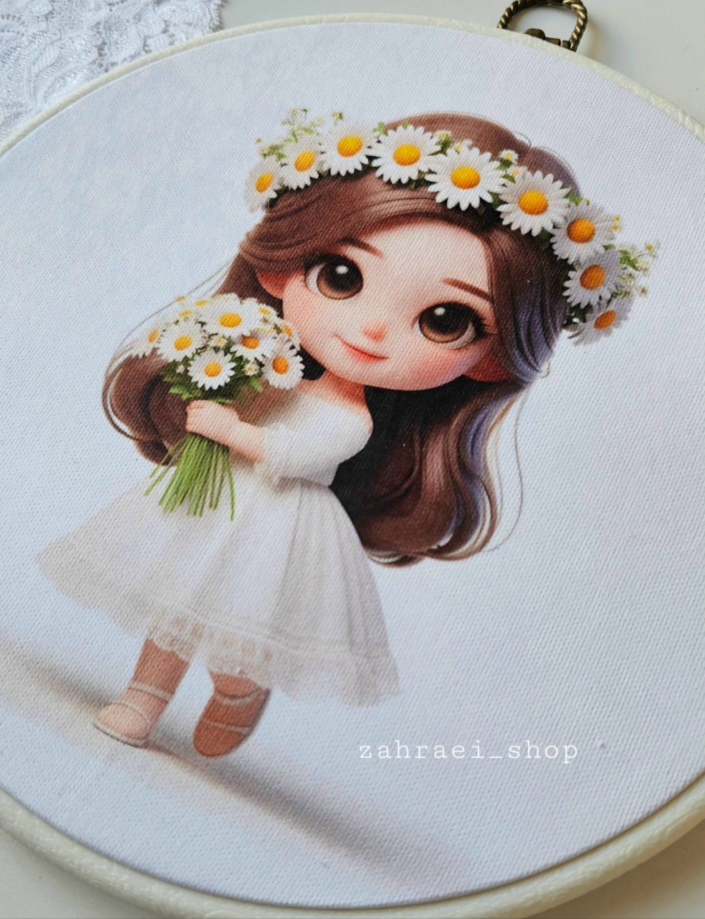 طرح چاپی دخترک عروس پارچه مخمل هازان به همراه کارگاه