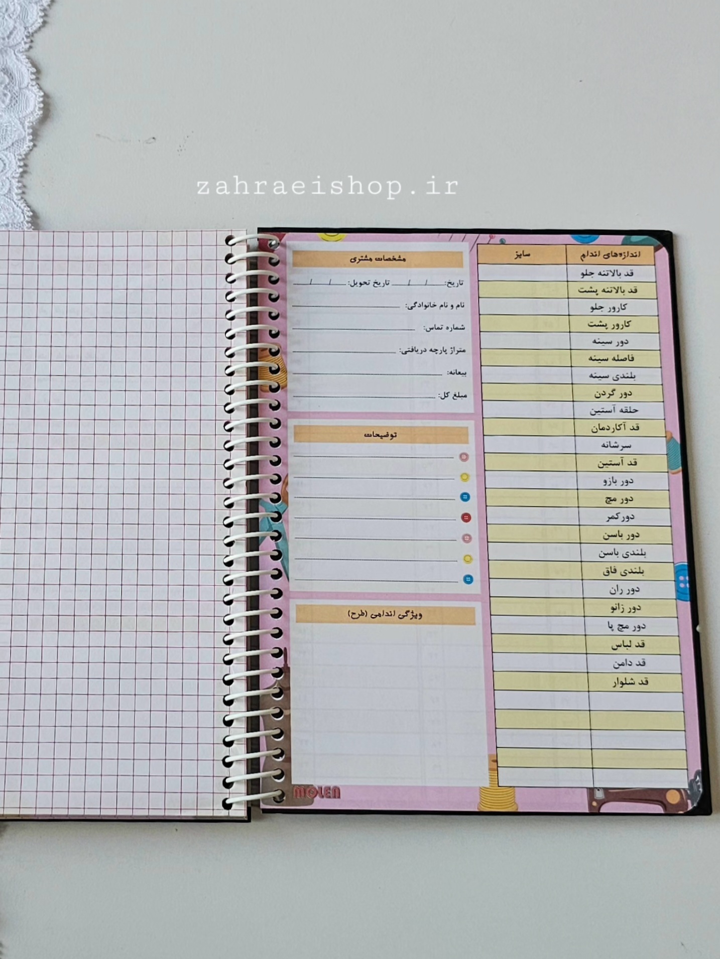 دفتر خیاطی فانتزی برای نظم دادن به سایزو اندازه ها