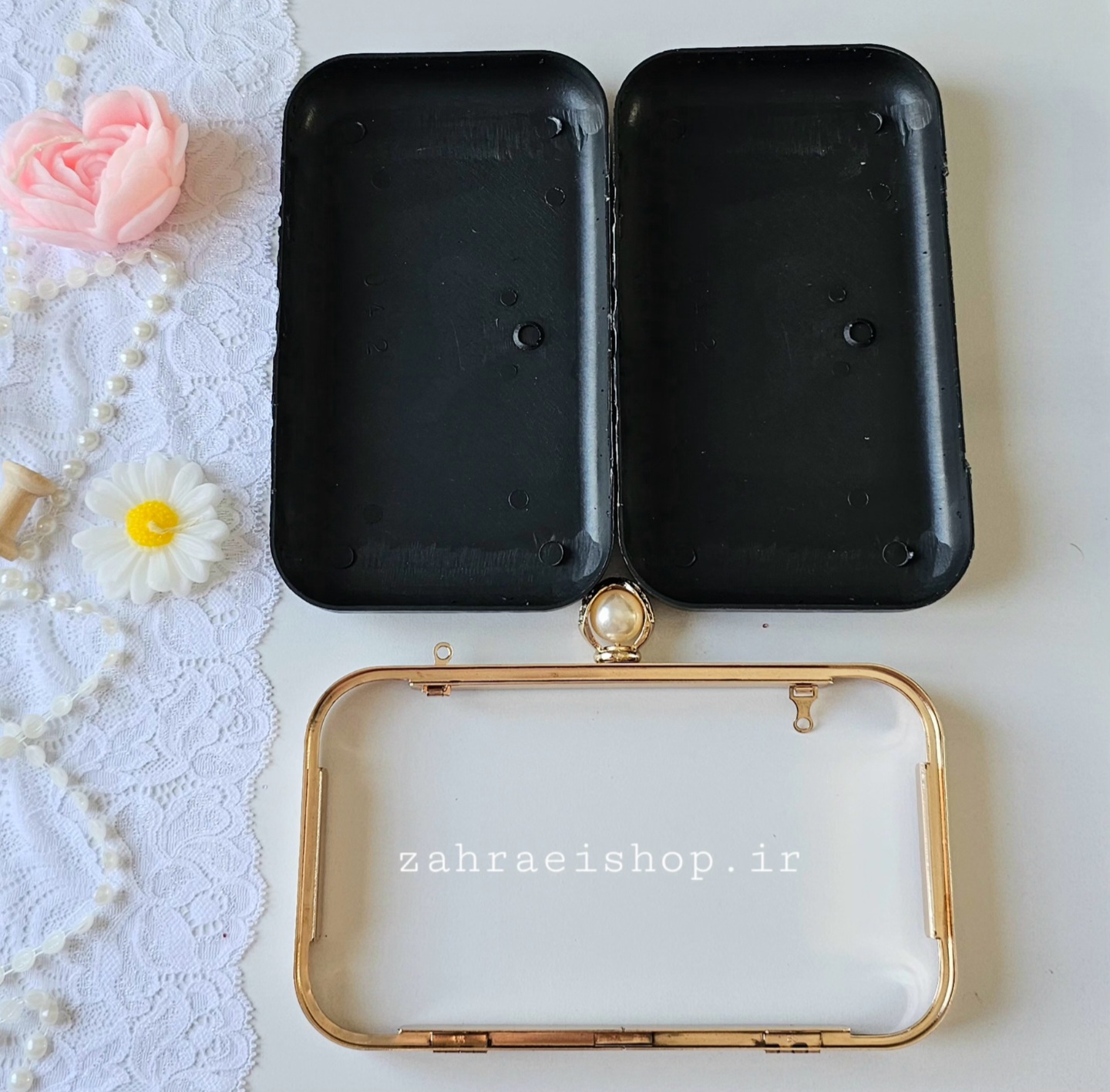 کیف کلاچ آماده مروارید دار مستطیل دور گرد