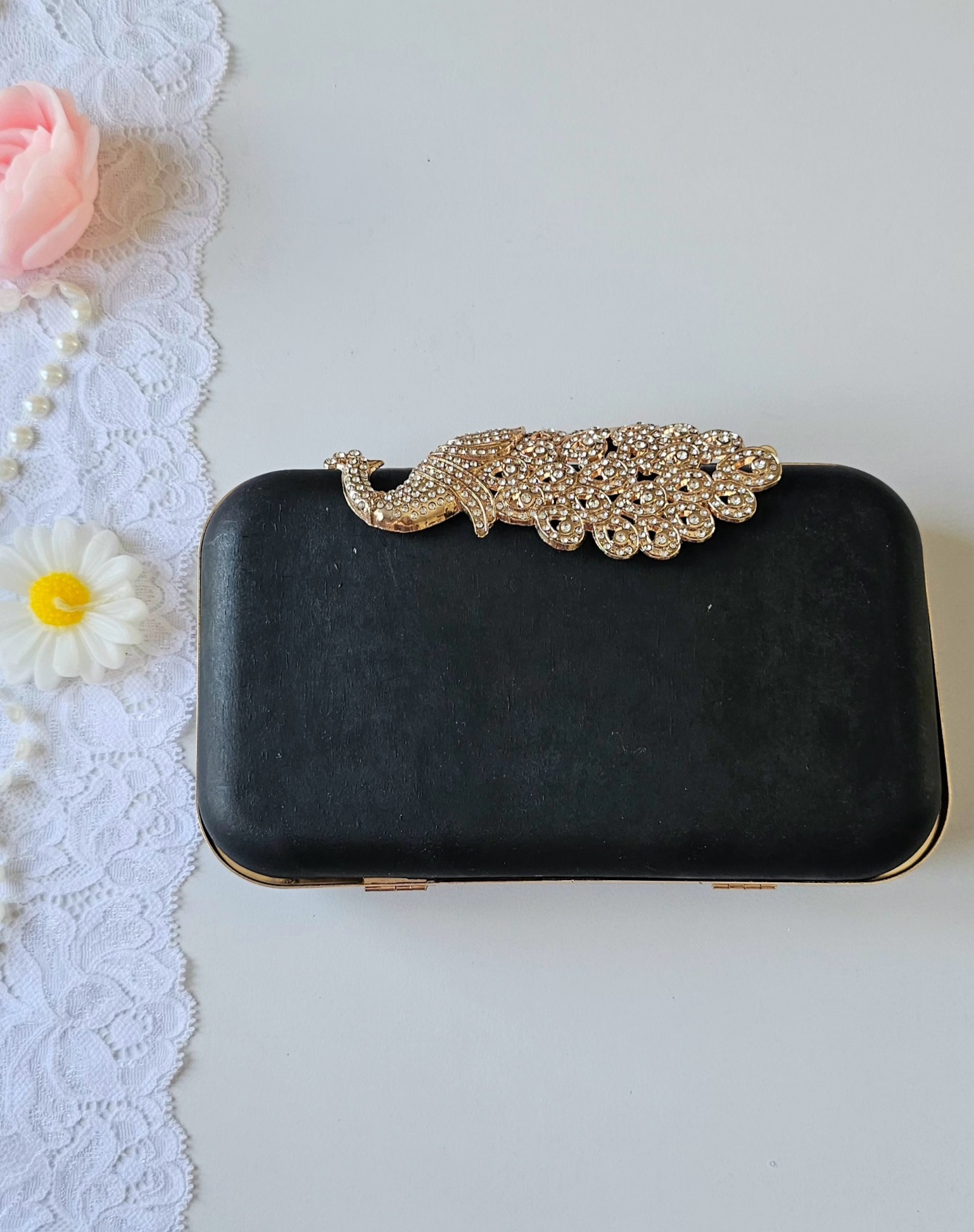 کیف کلاچ آماده مدل طاووس طلایی